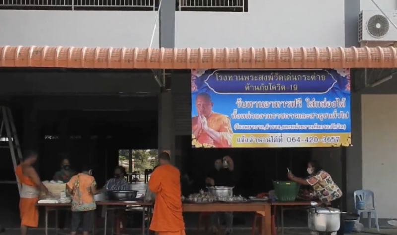 วันที่ 26 มีนาคม ที่ศาลาการเปรียญวัดเด่นกระต่าย วัดป่าทอง หมู่1 ตำบลในเมือง อำเภอสวรรคโลก จังหวัดสุโขทัย พระมหากฤษณพล ฉนทาลโย น.ธ.เอก ป.ธ.4 เจ้าอาวาสวัดเด่นกระต่าย พร้อมด้วยญาติโยม ร่วมใจกันตั้งโรงทาน พระสงฆ์วัดเด่นกระต่ายต้านภัยโควิด 19 แจกอาหารฟรี ให้ทั้งหน่วยงานราชการ และประชาชนทั่วไปในช่วงการแพร่ระบาดของเชื้อโควิด 19