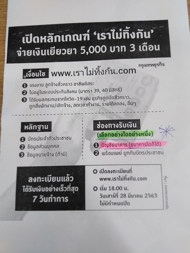 สำหรับมาตรการเงินช่วยเหลือ 5000 บาท 3 เดือน รวม 15000 ที่ช่วยเหลือผู้ที่ได้รับผลกระทบจากcovid-19นั้น หลายคนยังไม่ทราบขั้นตอนการลงทะเบียนว่าควรทำจากตรงไหน ลงยังไง วันนี้เราจึงนำขั้นตอนการลงทะเบียนออนไลน์มาฝาก โดยกรอกผ่าน www.เราไม่ทิ้งกัน.com