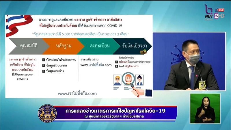 โดยจะมีการสนับสนุนเงินช่วยเหลือ 5000 บาท เป็นระยะเวลา 3 เดือน ตั้งแต่เดือนเมษายน-มิถุนายน 2563 ทางรัฐบาลได้มีการจัดทำเว็บไซต์ให้เข้าตรวจสอบคุณสมบัติ เพื่อลงทะเบียนแสดงความจำนงในการรับเงินช่วยเหลือมาตรการดังกล่าว