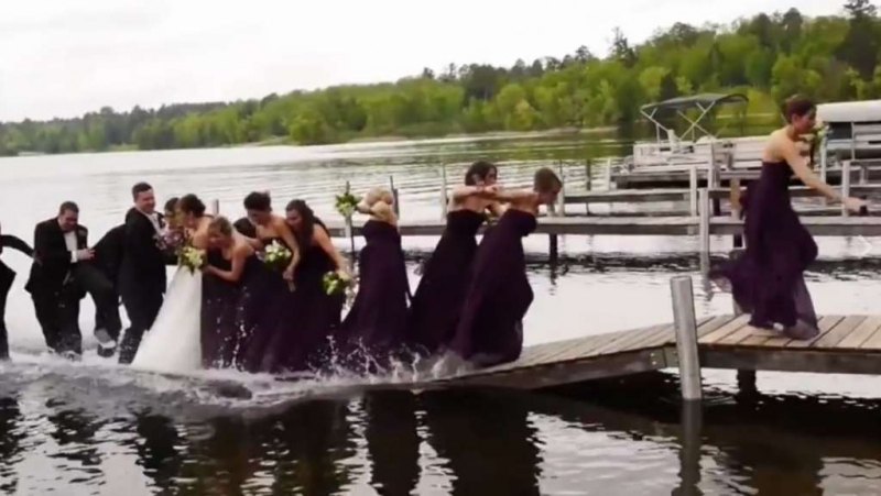 แต่ด้วยเพราะสะพานดังกล่าวเป็นสะพานไม้ และไม่สามารถรับน้ำหนักจำนวนคนได้มากขนาดนั้น เลยทำบังเกิดเหตุการณ์ไม่คาดฝันเกิดขึ้นทำเอาแขกๆ เพื่อนบ่าวสาววิ่งกันกระเจิงจ้า