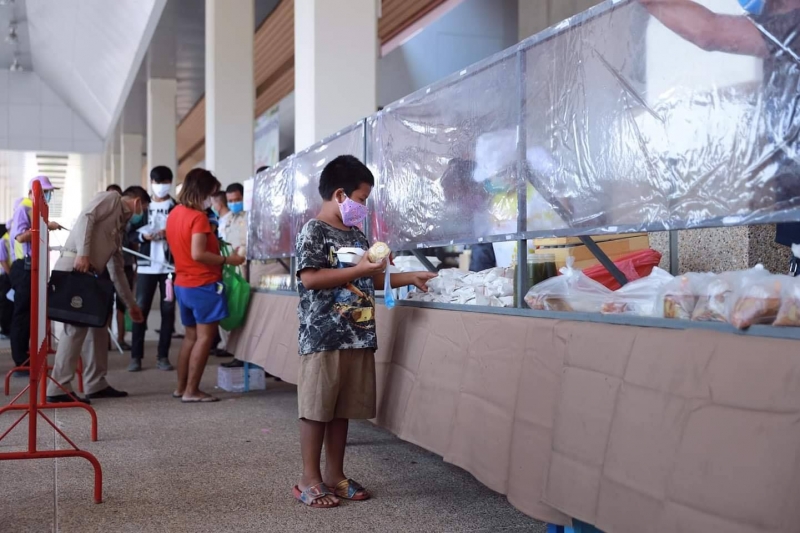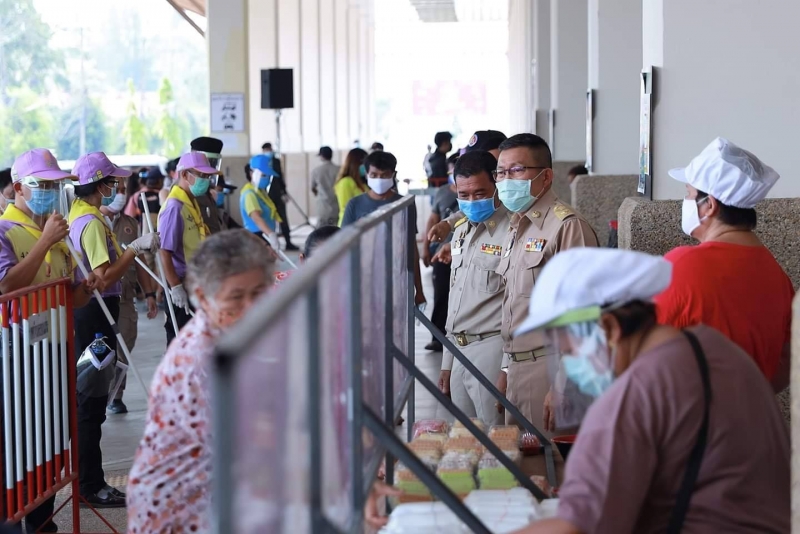 โดยให้ประชาชนที่มารับแจกเข้าแถวรับอาหารได้รับการตรวจวัดอุณหภูมิ ใส่หน้ากาก ล้างมือด้วยเจล และยืนห่างจากผู้มารับอาหารแจก 1.5 เมตร และต่อแถวห่างกัน 1.5 เมตร เข้าไปรับอาหารด้วยการหยิบด้วยมือตนเอง เมื่อได้รับอาหารแจกแล้วให้นำกลับบ้านทันที