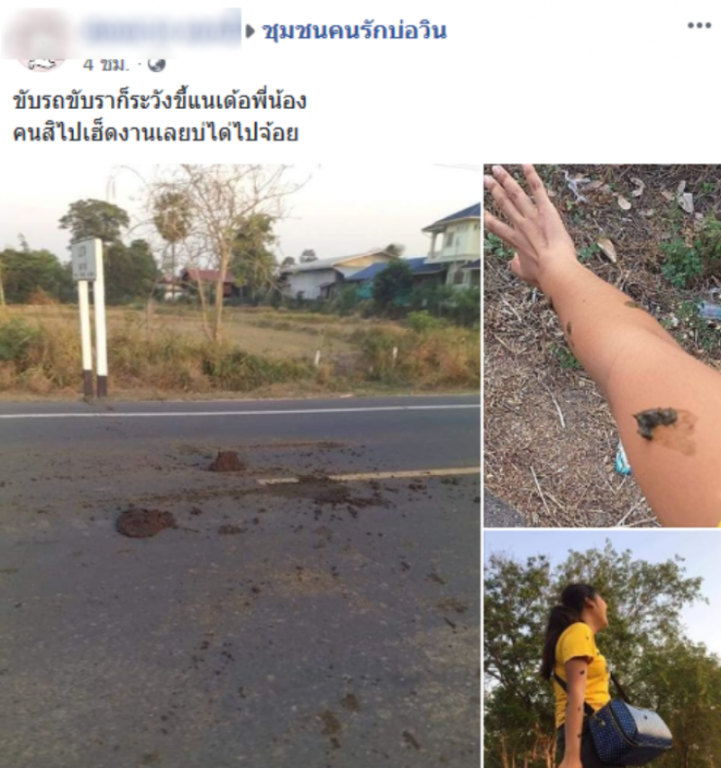 เรียกได้ว่าเป็นอีกหนึ่งเรื่องราว ที่น่าเห็นใจอย่างมาก เมื่อในโลกออนไลน์ ได้มีผู้ใช้เฟซบุ๊กรายหนึ่ง ได้โพสต์ภาพพร้อมระบุข้อความว่า ขับรถขับราก็ระวังขี้แนเด้อพี่น้อง คนสิไปเฮ็ดงานเลยบ่ได่ไปจ้อย โดยในภาพจะมีหญิงสาวคนหนึ่ง ที่กำลังจะไปทำงาน แต่ทว่าจู่ๆ ก็ได้มีรถยนต์ขับผ่านมาด้วยความเร็ว แถมยังไปเหยียบกองอุจจาระวัวที่อยู่กลางถนน กระเด็นมาใส่สาวคนดังกล่าวอีกด้วย ทำเอาเลอะไปทั้งตัว งานนี้บอกเลยว่าเป็นใครก็ต้องเซ็งแน่นอน เป็นภาพที่น่าเห็นใจสุด โดยหลังจากที่ได้มีการเผยแพร่ภาพออกไป ก็กลายเป็นที่ฮือฮาอย่างมากในโซเชียล