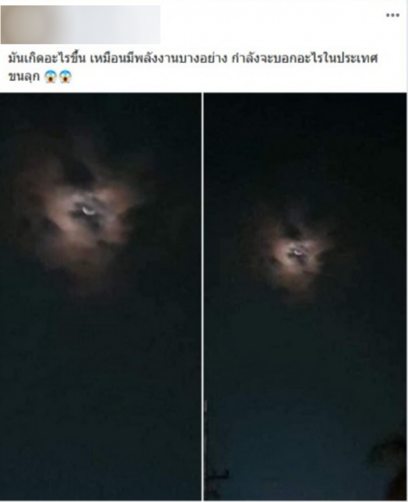 ล่าสุดมีรายงานว่า ภาพถ่ายดังกล่าว เป็นของหนุ่มชาวมาเลเซียรายหนึ่ง ซึ่งได้โพสต์ลงในเฟซบุ๊กที่ใช้ชื่อว่า Mohammd Azlan ซึ่งระบุว่าถ่ายวันที่ 30 มีนาคม 2020 พร้อมกับมีการกล่าวถึงพระเจ้า ตามความเชื่อของศาสนาอิสลาม ซึ่งหลายคนต่างมองว่าภาพดังกล่าวอาจเป็นเพียงแค่ก้อนเมฆที่มาบังดวงจันทร์ และอาจจะไม่ได้เกี่ยวข้องกับประเทศไทยแต่อย่างใด