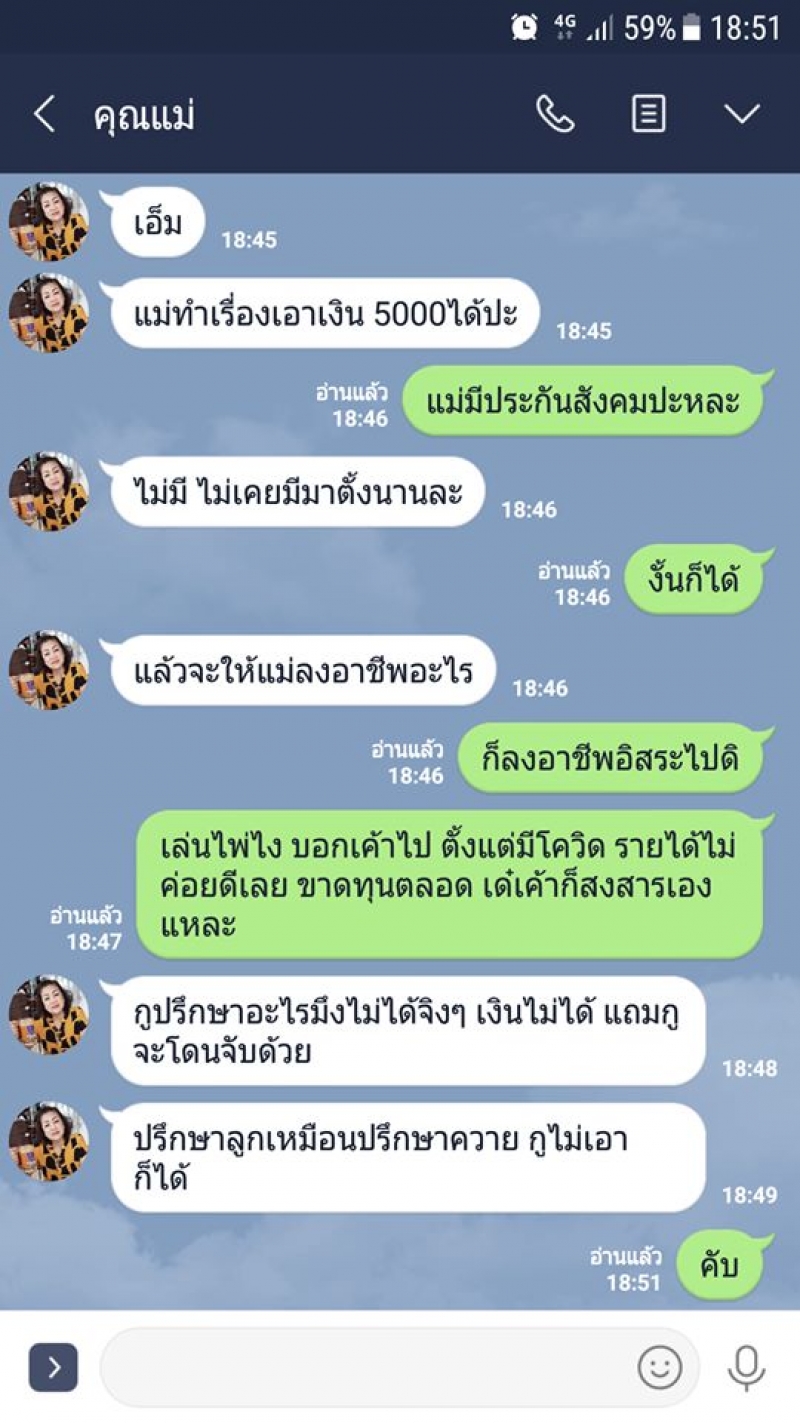 แม่ ปรึกษา บุตรชาย เรื่องขอรับเงิน 15000 จากรัฐ