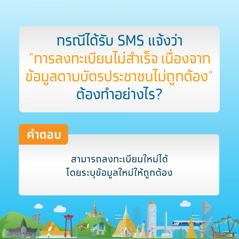 2 จะมี SMS/E-mail ตอบกลับกรณีที่ลงทะเบียนไม่ถูกต้อง ซึ่งท่านสามารถลงทะเบียนใหม่ได้