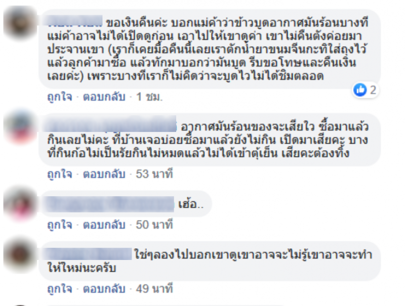 ซึ่งหลังจากที่ได้มีการโพสต์ภาพ ก็มีชาวโซเชียลเข้ามาแสดงความคิดเห็นกันเป็นจำนวนมาก หลายคนต่างมีความเห็นว่า อาจเป็นเพราะอากาศที่ร้อนของบ้านเรา จึงส่งผลทำให้อาหารบูดได้ง่าย ทั้งนี้ จึงอยากแนะนำหากใครที่จะซื้ออาหารรับประทาน ก็ควรเลือกร้านที่ทำใหม่ร้อนๆจะดีที่สุด