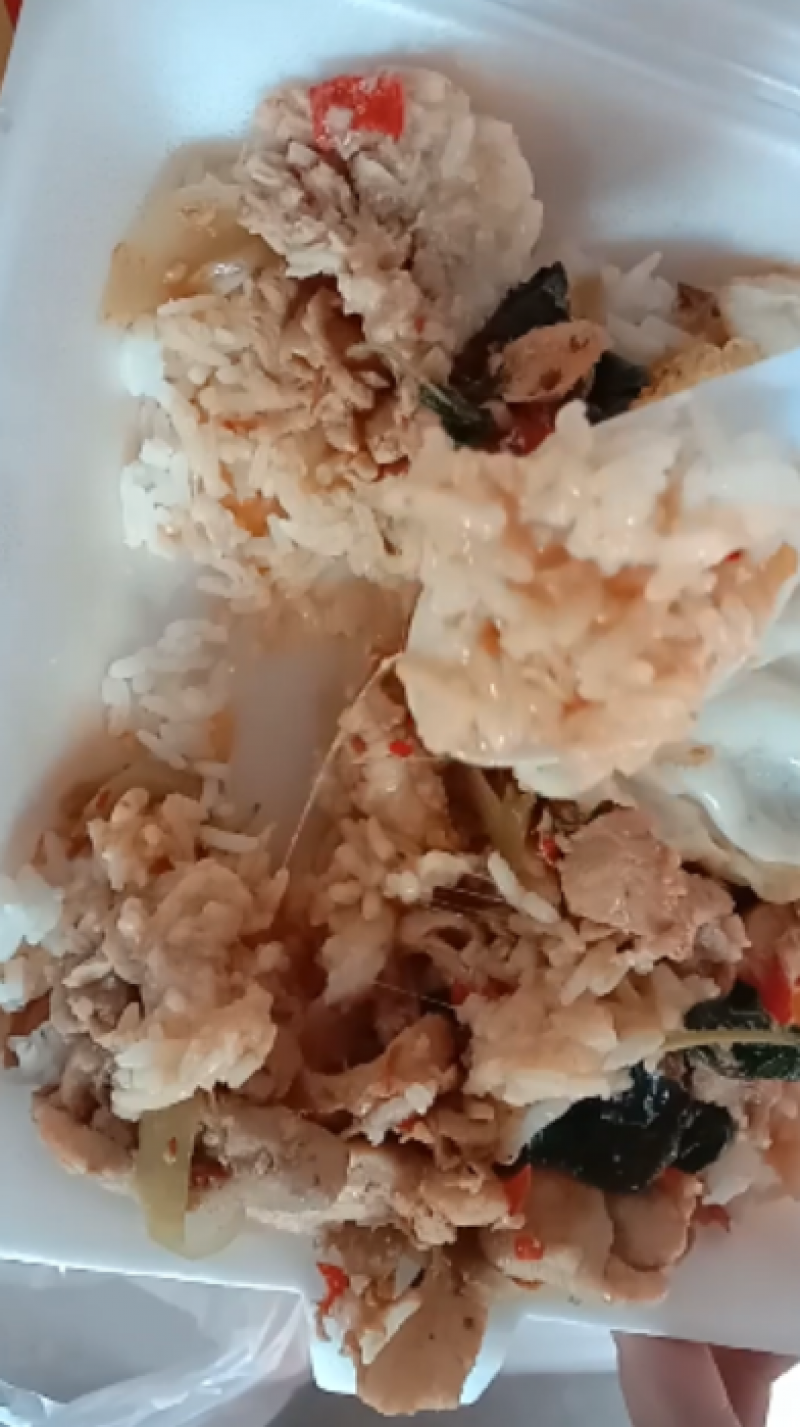 โดยผู้โพสต์ได้ระบุว่า ขออณุญาตินะครับ พอดีผมพาน้องไปรายงานตัวที่ ตม ปทุมมาแล้วได้ซื้อข้าวมาหน้า ตม ปทุม 5 กล่องกล่องละ 40 เป็นเงิน 200 ที่ทำใส่กล่องไวแล้ว แล้วเป็นแบบนี้ควรทำอย่างไรครับ มันไม่เหมาะกับเงินที่ซื้อไปเลย เสียใจครับแบบนี้ ผมเจตนาซื้อเพื่อกิน และไปฝากเพื่อนที่ทำงานเจอแบบนี้ไม่ไหวนะครับ