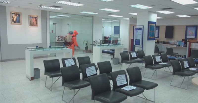 ขณะที่ทางเทศบาลเมืองสวรรคโลก โดยนายสมเกียรติ ลิมปะพันธุ์ รองนายกเทศบาลเมืองสวรรคโลก ได้ให้เจ้าหน้าที่จากกองสาธารณสุขและสิ่งแวดล้อม ออกทำการฉีดพ่นยาฆ่าเชื้อโรคบริเวณภายในอาคารและภายนอกอาคารของธนาคารที่ชายคนดังกล่าวเข้าไปใช้บริการ เพื่อเป็นการสร้างความมั่นใจและความปลอดภัยให้กับประชนที่มาใช้บริการ