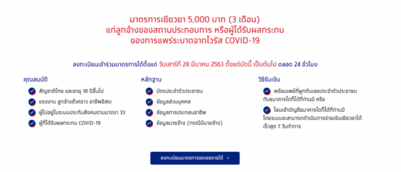 จากกรณีที่รัฐบาลออกมาตรการช่วย แรงงาน ลูกจ้างชั่วคราว และอาชีพอิสระ ที่ได้รับผลกระทบ ด้วยการสนับสนุนเงิน 5000 บาท 3 เดือน ซึ่งจะเปิดให้ลงทะเบียนผ่าน เว็บไซต์เราไม่ทิ้งกัน