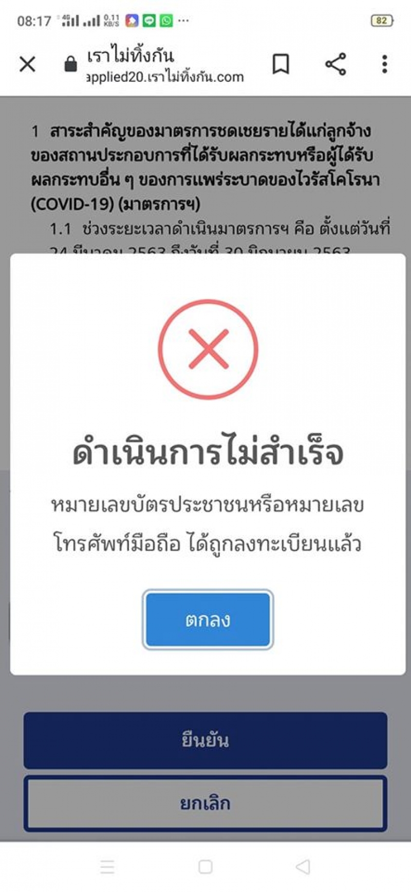 นอกจากนี้ ยังมีอีกหลายท่านที่มีข้อสงสัย ว่าหากยกเลิกการลงทะเบียนไปแล้ว จะสามารถกลับมาลงทะเบียนใหม่ได้หรือไม่ เพราะหลายท่านเข้าใจว่าหากจะแก้ไขต้องกดยกเลิก โดยมีรายงานพบว่า คนที่ขอยกเลิกไปแล้วจะไม่สามารถลงทะเบียนใหม่ได้ โดยจะมีข้อความขึ้นดังนี้