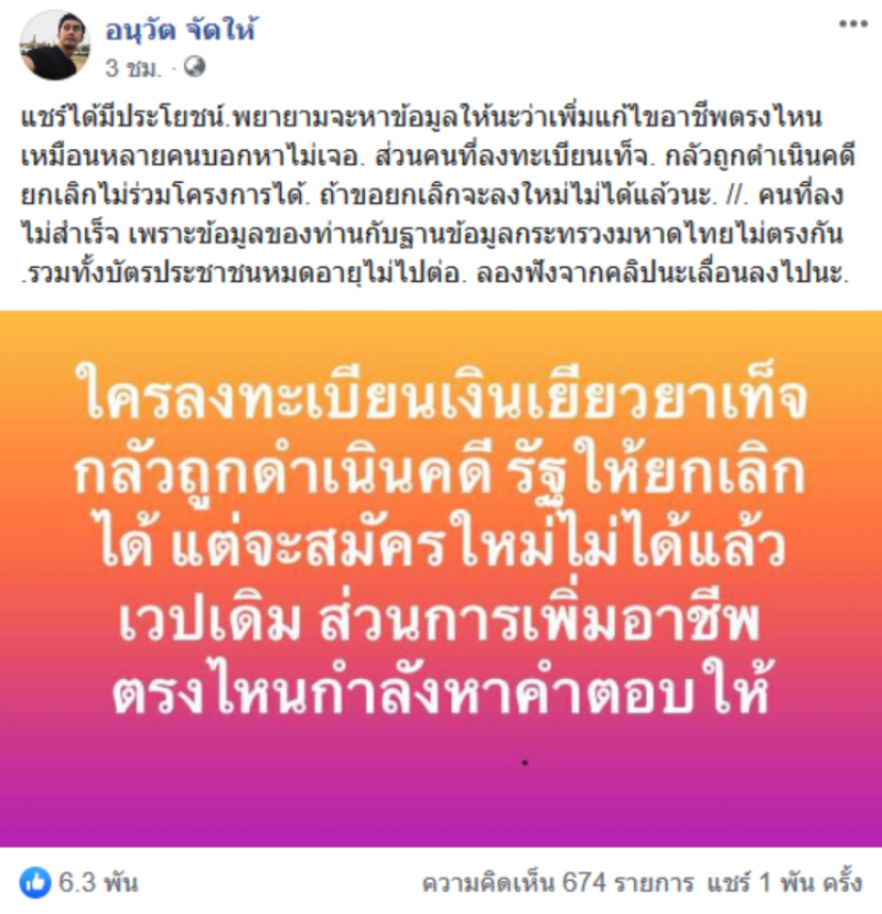 ข้อความโพสต์จาก อนุวัต จัดให้