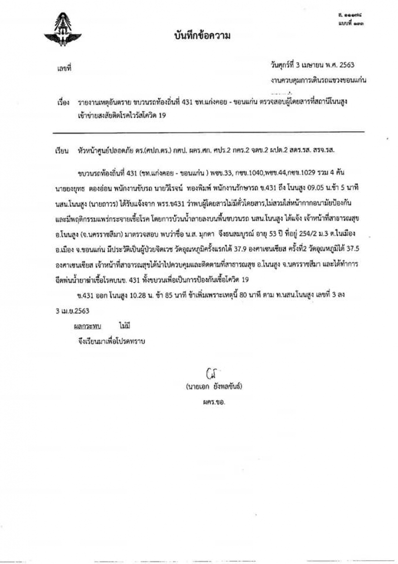 รถไฟขบวน 431 มีผู้โดยสารบนขบวนรถต้องสงสัยว่าอาจจะติด COVID-19 อยู่บนขบวน