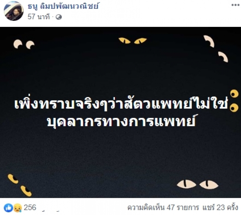 จากนั้นได้โพสต์อีกสองครั้งว่า ติดครั้งแรกในชีวิต น่าทุเรศตัวเองสิ้นดี และ เพิ่งทราบจริงๆว่าสัตวแพทย์ไม่ใช่บุคลากรทางการแพทย์