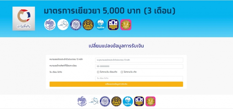 เว็บไซต์ เราไม่ทิ้งกัน เปลี่ยนข้อมูลการรับเงิน 5000 ได้แล้ว