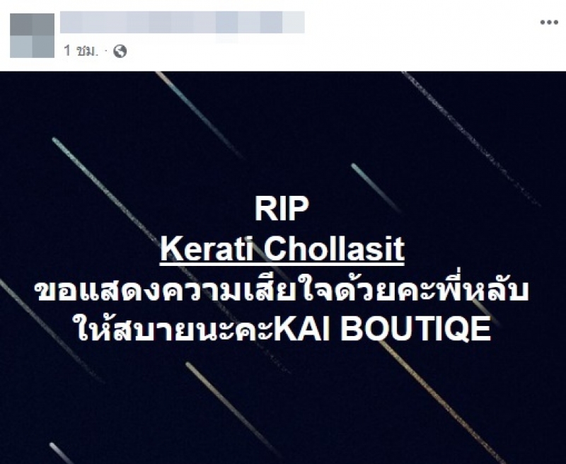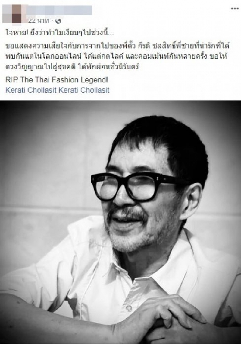 วันที่ 10 เมย หลังข่าวการเสียชีวิตของ ตั้ว กีรติ ชลสิทธิ์ เจ้าของห้องเสื้อชื่อดัง ดวงใจบิส ที่บ้านพักส่วนตัวในพื้นที่ลาดพร้าว สร้างความเสียใจให้กับบุคคลในวงการแฟชั่นเป็นจำนวนมาก เพราะตั้ว กีรติ ถือเป็นดีไซเนอร์ดันดับต้นๆของไทย