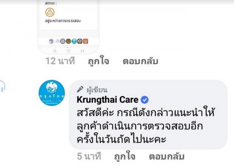 สถานะ อยู่ระหว่างการตรวจสอบข้อมูล ซึ่งแอดมินของกรุงไทยแนะนำว่าให้เช็กสถานะอีกครั้งในวันถัดไป