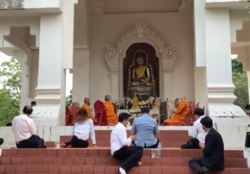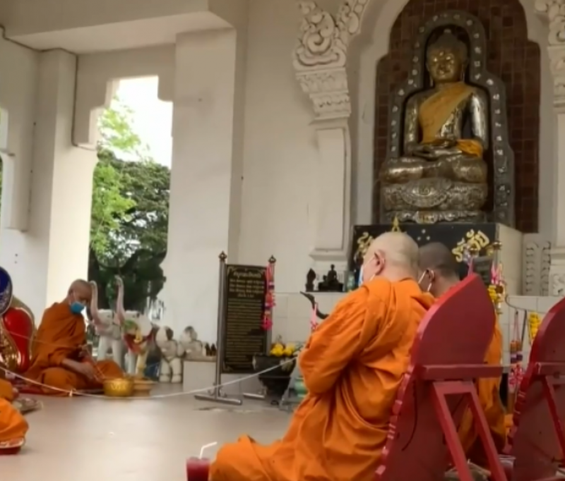 โดยมีพระครูภาวนาชยานุสิฐ หรือพระอาจารย์อ๊อฟ ผู้ช่วยเจ้าอาวาสวัดมหาชัย พระอารามหลวง พร้อมคณะสงฆ์วัดวังน้ำเย็น ตำบลเกิ้ง อำเภอเมือง จังหวัดมหาสารคาม รวม 9 รูป ร่วมประกอบพิธีสวดทำน้ำพระพุทธมนต์ ก่อนจะนำขันน้ำมนต์ที่ปลุกเสก ไปฉีดพ่นทั้งสี่มุมเมือง สร้างขวัญและกำลังใจให้กับพี่น้องประชาชน และให้กลับมาประกอบสัมมาชีพได้อย่างปกติสุขโดยเร็ว อีกทั้งเป็นการต้อนรับประเพณีสงกรานต์ของไทยอีกด้วย