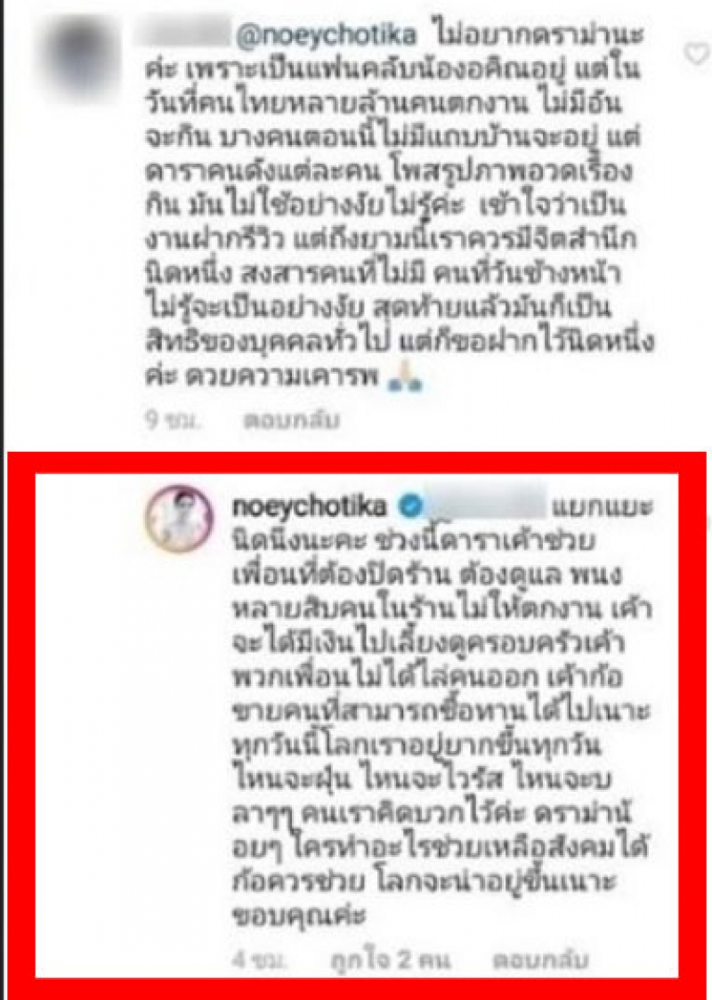ล่าสุด มีบุคคลปริศนาได้เข้ามาคอมเมนต์ในโพสต์ไอจีส่วนตัวของคุณแม่เนย โชติกา และยังไม่พอเท่านั้นค่ะ คุณแม่เนย โชติกา ได้ตอบกลับกลางไอจีส่วนตัว โดยระบุว่า