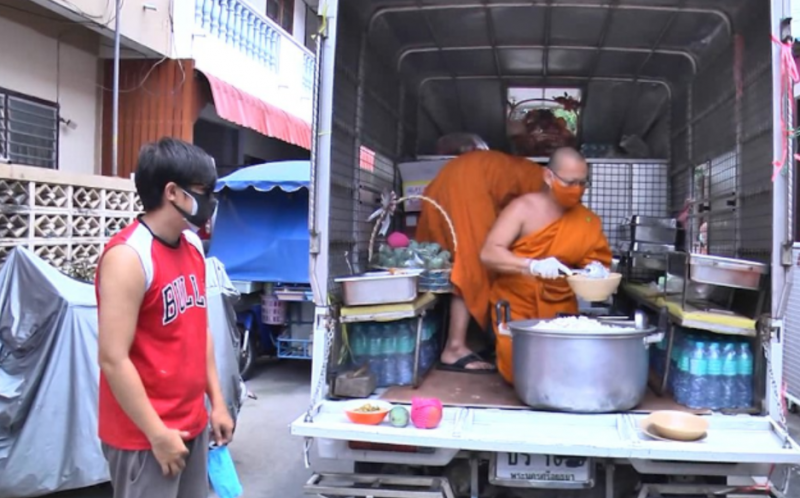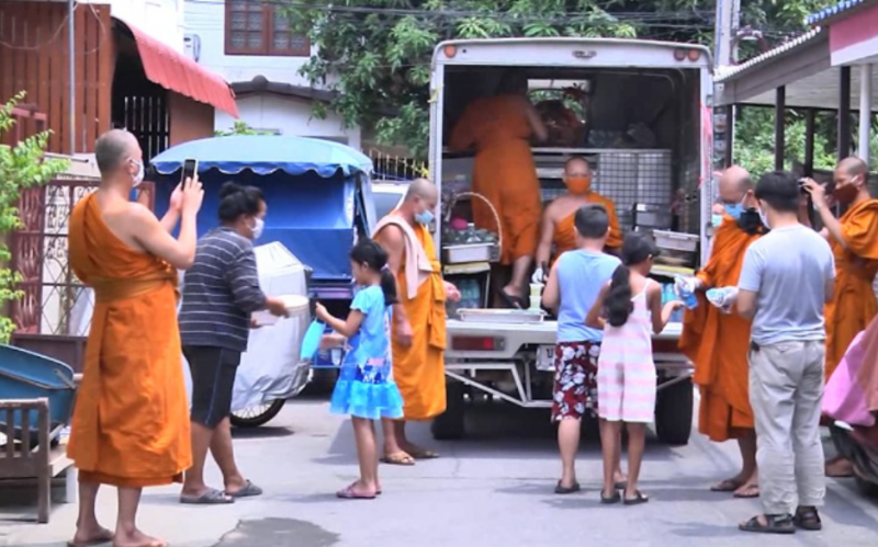 ด้าน ชาวบ้านที่มารับอาหาร บอกว่า เห็นพระนั่งท้ายรถขนหม้อข้าว หม้อแกง มาจอดหน้าบ้านเรียกให้ออมารับอาหาร สร้างความปลาบปลื้มใจมาก ดีใจที่พระท่านมาโปรด เพราะทุกวันจะต้องใส่บาตรพระ แต่มาวันนี้พระออกมาแจกจ่ายอาหารให้เป็นถือบุญอย่างมาก ซึ่งช่วยได้มากในช่วงที่ขาดรายได้
