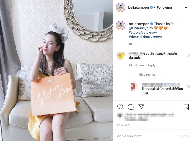 แต่ทั้งนี้ก็ไม่วายที่แฟนคลับของสาว เบลล่า ก็ได้เข้ามาคอมเมนต์ตอบกลับกันแบบจุกกันเลยทีเดียวค่ะ โดยระบุว่า แพนเค้กทำอะไรเหรอทำไมถึงต้องเลียนแบบ