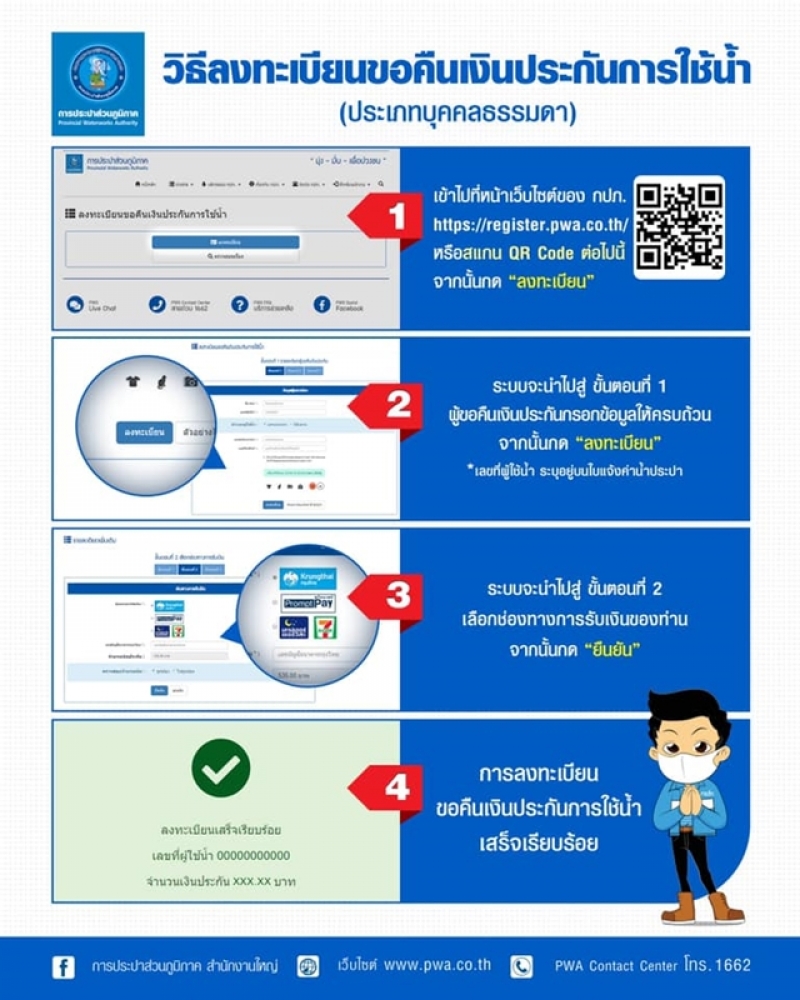 สำหรับช่องทางลงทะเบียนรับคืนจาก การประปาส่วนภูมิภาค
