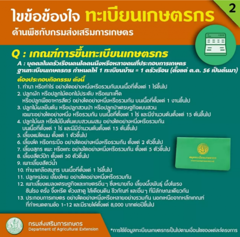 สำหรับเกณฑ์การขึ้นทะเบียนเกษตรกร มีดังนี้