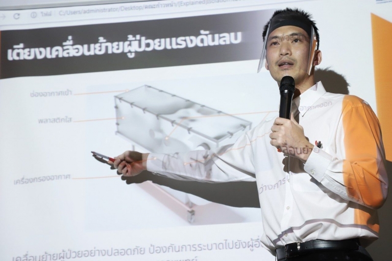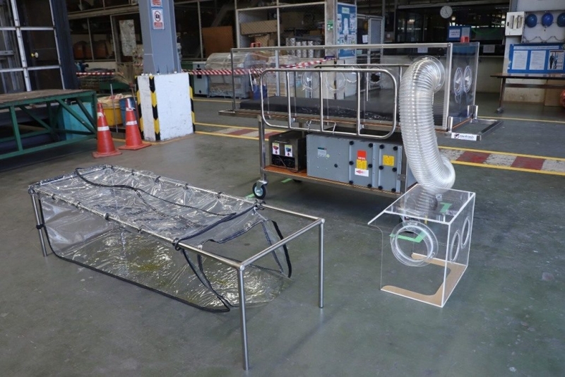 โดยไม่มีค่าใช้จ่าย 2 รายการ คือ 1. เตียงเคลื่อนย้ายผู้ป่วยแรงดันลบ (Patient Transportation Chamber) เพื่อป้องกันการแพร่กระจายของเชื้อไวรัส ในระหว่างเคลื่อนย้ายจากจุดหนึ่งไปยังอีกจุดหนึ่ง ต้นทุนประมาณ 40,000 บาท และห้องตรวจโรคติดเชื้อระบบทางเดินหายใจชนิดเฉียบพลัน (Modular ARI Clinic) ประกอบด้วยห้องปฏิบัติการแรงดันบวก สำหรับบุคคลากรทางการแพทย์ด้านหนึ่ง และห้องความดันลบสำหรับผู้เสี่ยงติดเชื้อ ผู้ถูกตรวจอีกด้านหนึ่ง ในรูปแบบที่ยกมาติดตั้งและถอดออกได้อย่างสะดวก ต้นทุนประมาณ 600,000 บาท