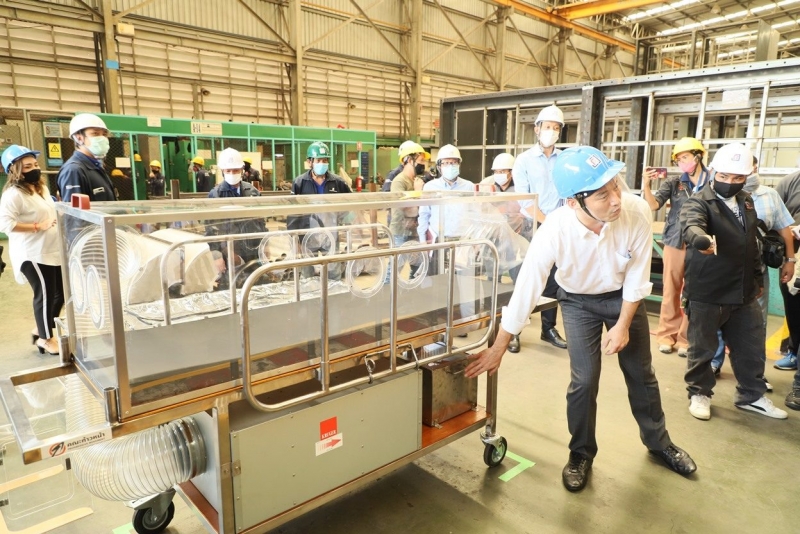ด้านนายนพพล ชัยจรูญรัตน์ กรรมการผู้จัดการ กล่าวเสริมว่า ดีใจที่ได้เป็นส่วนหนึ่งในการช่วยเหลือสังคม ซึ่งการผลิตอุปกรณ์การแพทย์ถูกออกแบบมาเพื่อใช้งานได้จริงทำให้แพทย์ พยาบาล รวมทั้งบุคลากรการแพทย์ปลอดภัยจากการแพร่เชื้อ