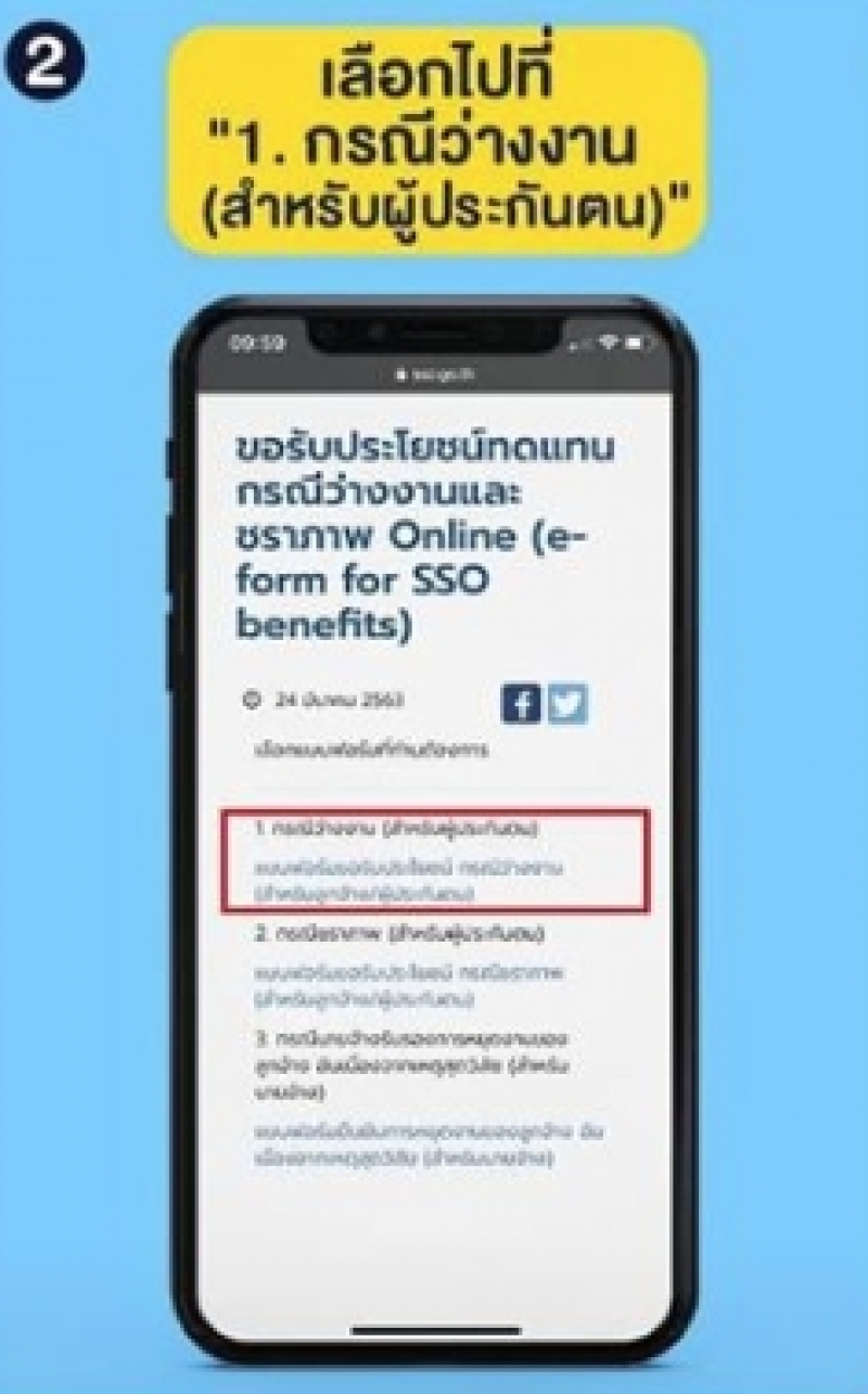 2.เลือกไปที 1 กรณีว่างงาน สำหรับผู้ประกันตน