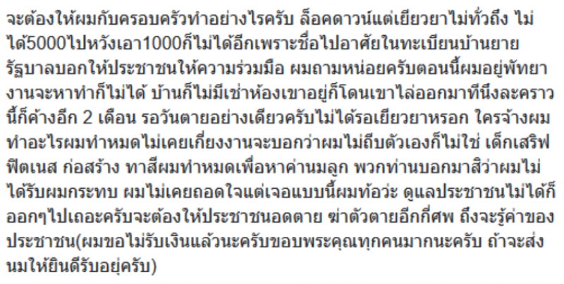 เรียกได้ว่าเป็นอีกหนึ่งเรื่องราว ที่ถูกพูดถึงอย่างมากในโลกออนไลน์ หลังจากที่ผู้ใช้เฟซบุ๊กรายหนึ่ง ได้มีการโพสต์เรื่องราวราวความลำบาก ของตนและครอบครัว ที่ได้รับความเดือดร้อนจากผลกระทบของ Covid 19 ลงในโซเชียล ซึ่งหนุ่มรายนี้ได้โพสต์ระบุว่า