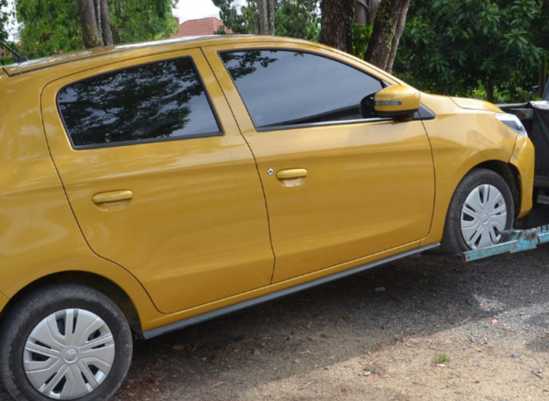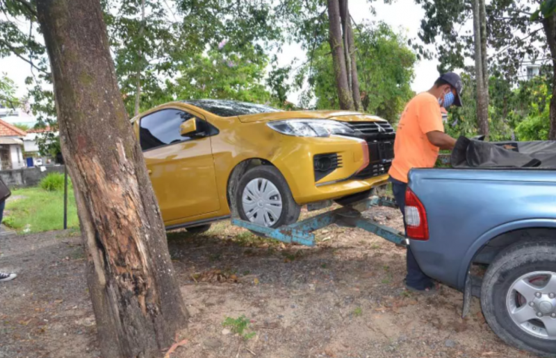 เมื่อไปถึง พบรถเก๋งคันดังกล่าวตรงกับรถคันที่ก่อเหตุชนตำรวจในกล้องวงจรปิดเมื่อวานนี้ แต่มีการถอดทะเบียนป้ายแดงออกแล้ว แต่ที่ใส่ป้ายทะเบียน ระบุเป็นรถที่ซื้อมาจากศูนย์มิตซูบิชิ ถลาง จ.ภูเก็ต สภาพรถปิดฟิล์มมืดดำทึบ 100% ทั้งคัน มองไม่เห็นสภาพรถข้างใน ตำรวจพิสูจน์หลักฐานได้ตรวจหารอยนิ้วมือของคนร้ายทั่วรถทั้งในและนอกตัวถังรถ ซึ่งในนรถไม่พบหลักฐานใดๆ จึงได้ใช้รถลากรถเก๋งคันกลับมาเก็บไว้ที่ สภ.ท่าศาลา