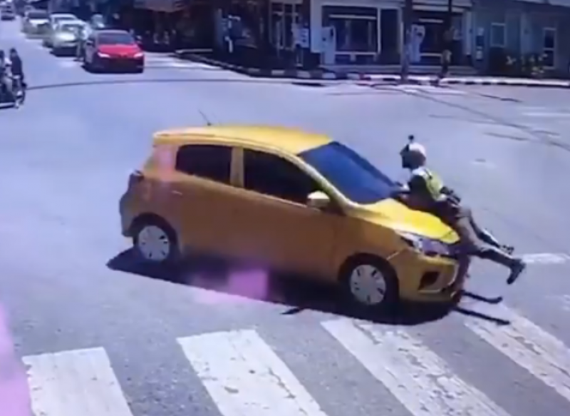 จากกรณีชายนิรนามขับรถเก๋ง มิตซูบิชิ รุ่นมิราจ สีเหลือง ป้ายแดง พุ่งชนท้ายรถ จยย.สายตรวจจราจรของ ด.ต.มลตรี นิติชัย อายุ 44 ปี ผบ.หมู่งานจราจร สภ.ท่าศาลา จ.นครศรีธรรมราช บริเวณสี่แยกไฟแดงกรุงไทย ในเขตเทศบาลตำบลท่าศาลา ด.ต.มลชัย จึงเดินลงมายืนดักหน้ารถเพื่อจะสอบถามว่าชนท้ายรถ จยย.ทำไม