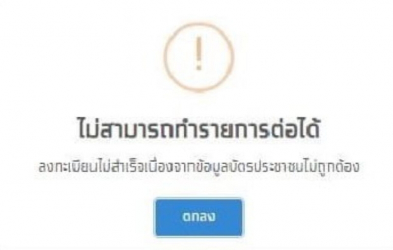 ความหมาย ข้อมูลบัตรประชาชนไม่ถูกต้อง สามารถลงทะเบียนใหม่ได้ ปิดลงทะเบียนวันที่ 22 เม.ย. 63 เวลา 24.00 น.