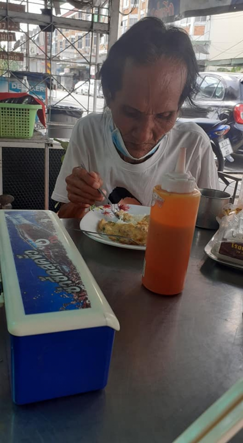 เราเลยอาสาไปส่งลุง ก่อนจะไปส่งก็ถามลุงว่า ลุงกินข้าวหรือยัง ลุงตอบว่ายัง เราเลยบอกลุงว่าหนูก็ยังไม่ได้กิน เราก็พาลุงมากินข้าวที่ร้านก๋วยเตี๋ยวปาดเหงื่อ ของน้องสาวเรา เล่าเรื่องให้น้องเปิ้ลฟัง เปิ้ลก็ช่วยเหลือลุงมาอีก 100 ให้ไข่เป็ด ให้น้ำมันพืชกับลุงอีก แล้วก็ไม่ได้คิดค่าข้าวลุงกับเรา ต้องขอบคุณน้องเปิ้ลมาก