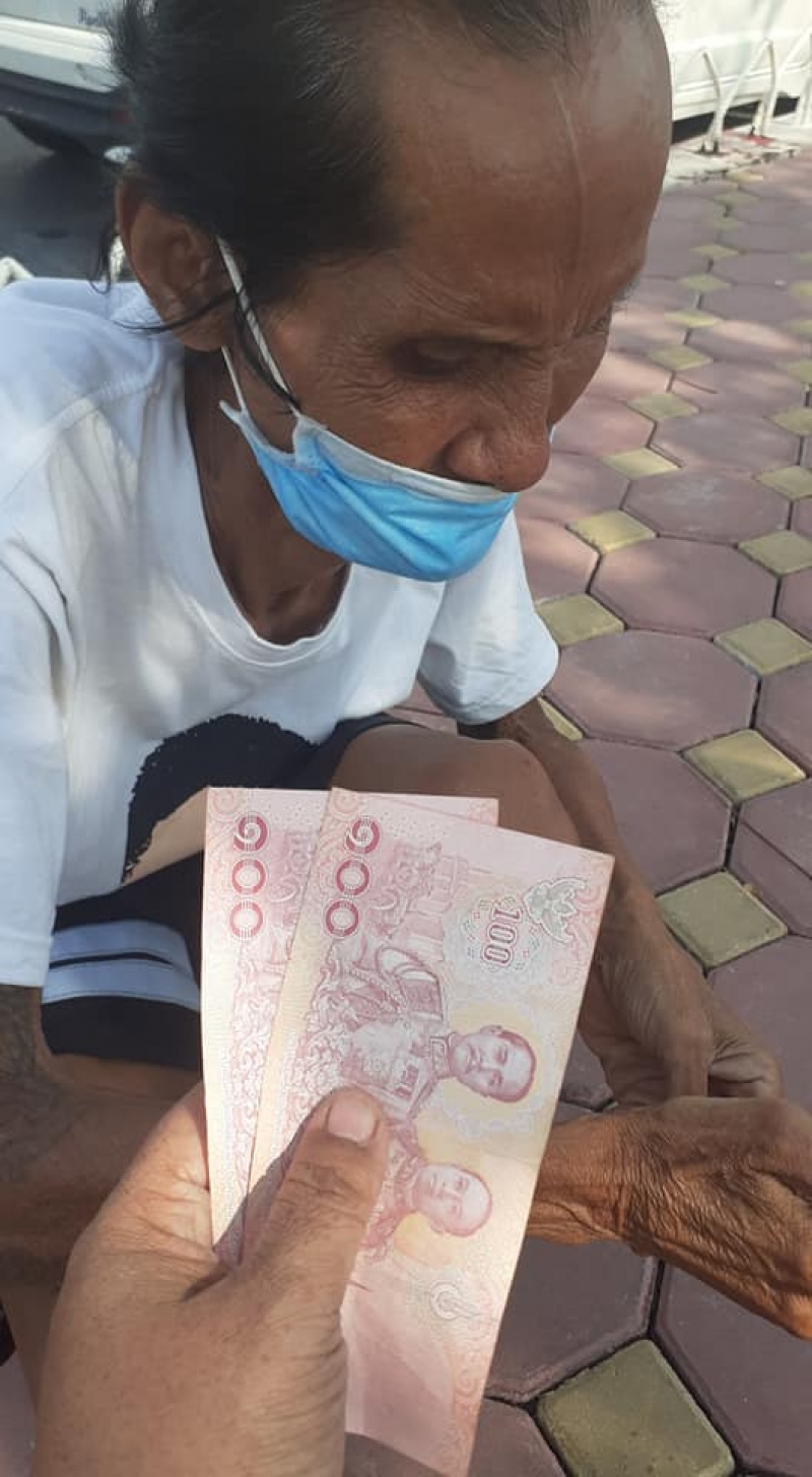 ก็เลยลงไปถาม ลุงเล่าว่า ลุงโทรไปขอเงินกับลูกชาย ลูกชายเป็นทหารเกณฑ์อยู่จังหวัดสระแก้ว บอกกับลูกว่า พ่อไม่มีเงินใช้เลยส่งเงินมาให้พ่อสัก 100-200 แต่ลุงมากดเงินดูลูกชายก็ไม่ส่งเงินมา ลุงยืมโทรศัพท์โทรหาลูกชายหลายครั้งแล้ว เขาก็ไม่รับ เราเลยอาสาโทรหาให้ ลูกลุงก็ไม่รับ เราสงสาร เราเลยให้ลุง 200 เราไม่ได้มีเยอะ แต่เราอยากช่วย