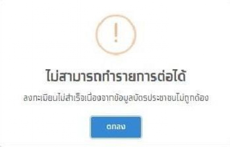 ความหมาย : ข้อมูลบัตรประชาชนไม่ถูกต้อง สามารถลงทะเบียนใหม่ได้ (ปิดลงทะเบียนวันที่ 22 เม.ย. 63 เวลา 24.00 น.)