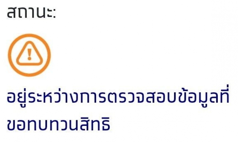 ความหมาย: ระบบได้รับการขอยื่นทบทวนสิทธิ์จากคนที่ตกเกณฑ์และไม่เห็นด้วยกับการคัดกรองแล้ว หลังจากนี้จะมีเจ้าหน้าที่ติดต่อกลับไปเพื่อตรวจสอบกรุณาเตรียมหลักฐานการประกอบอาชีพให้พร้อม