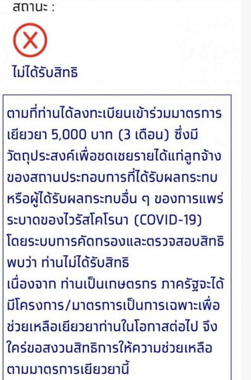 ความหมาย: ไม่ได้รับสิทธิ เพราะไม่ผ่านเกณฑ์ แต่สามารถยื่นอุทธรณ์ทางออนไลน์ ด้วยช่องทาง ยื่นทบทวนสิทธิ