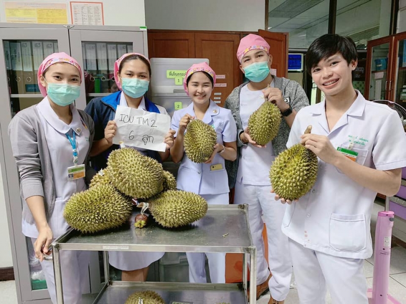 ให้กำลังใจคุณหมอ เจ้าหน้าที่ทุกท่าน คณะลูกศิษย์หลวงปู่แบน ธนากโร วัดดอยธรรมเจดีย์ จังหวัดสกลนคร มอบทุเรียน 6,203 กิโลกรัม จำนวน 2,105 ลูก ชะนี 1,018 ลูก 3,044 กิโลกรัม หมอนทอง 1,087 ล 3,159 กิโลกรัม และมังคุด จำนวน 50 กิโลกรัม เพื่อเป็นกำลังใจในการทำงานสู้ covid-19 และระลึกถึงองค์หลวงปู่แบน 100 วัน