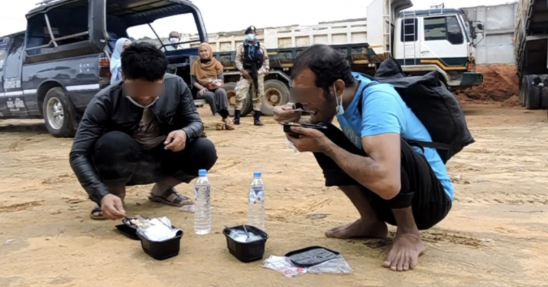 ทั้งนี้ ระหว่างจับกุมเจ้าหน้าที่ได้นำข้าวและน้ำที่เตรียมมาให้แรงงานไทยกินเพื่อคลายหิวระหว่างรอการดำเนินการตามขั้นตอน
