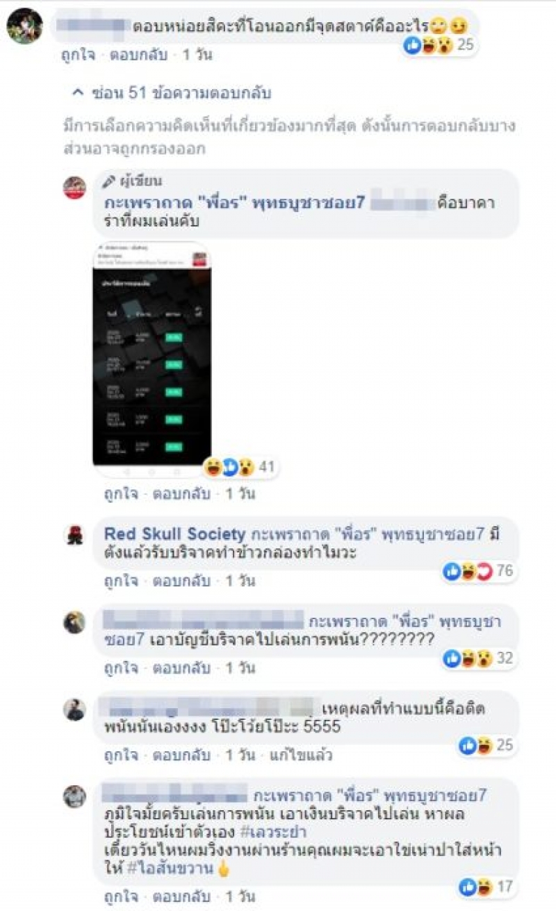 แต่งานนี้ยังไม่จบมีผู้เข้าไปถามว่า การโอนเงินที่มีจุดสตางค์คืออะไร มีการเข้ามาตอบว่า คือ บาคาร่าที่ผมเล่น ทั้งนี้ เจ้าของร้านได้ไลฟ์ชี้แจงในประเด็นดังกล่าว ว่า ตนเองแจกข้าวจนเงินหมดบัญชี และขอรับบริจาคเพิ่มเพื่อทำข่าวกล่องอีก
