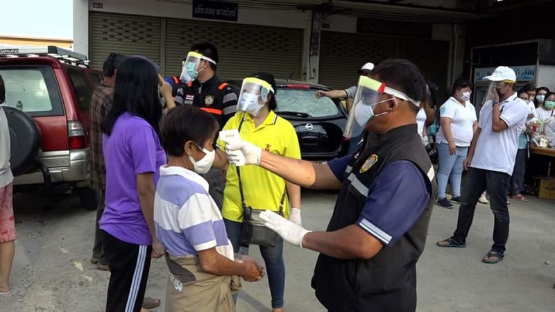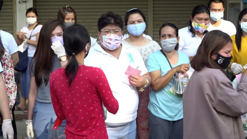 ซึ่งมีประชาชนเข้าแถวยาวกว่า 2 กิโลเมตรเพื่อรอรับสิ่งของบริจาครรวมทั้งเงินสดจำนวน 3 แสนบาทโดยมีเจ้าหน้าที่จากเทศบาลนครขอนแก่นตำรวจภูธรเมืองขอนแก่นและทหารจากหมณฑลทหารบกที่ 23 มาคอยจัดระเบียบและตรวจวัดอุณหภูมิและใช้เจลแอลกอฮอล์ทำความสะอาดผู้ที่มารับสิ่งของ