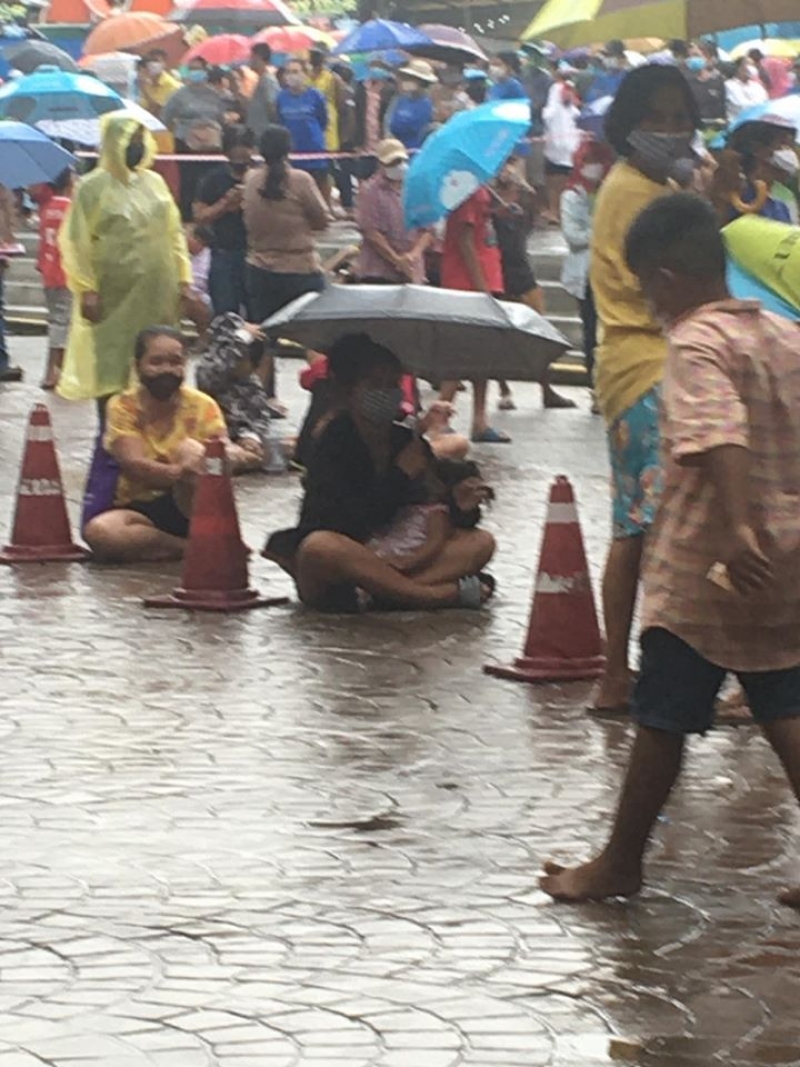 ชาวบ้านยอมตากฝน รอรับของแจก