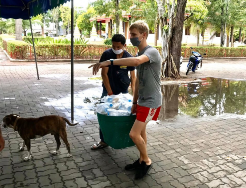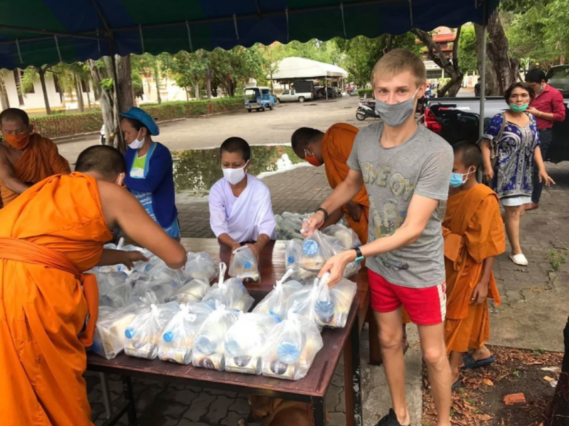 วันที่ 29 เมษายน มีรายงานว่า ที่วัดใหม่พัฒนาราม พระอารามหลวง เขตเทศบาลนครสุราษฎร์ธานี หรือวัดหลวงพ่อพัฒน์ อดีตพระเกจิชื่อดังใน จ.สุราษฎร์ธานี ได้พบนักท่องเที่ยวชาวรัสเซียมาเที่ยวเมืองไทย ชื่อ Mr.Iwan อายุ 25 ปี เป็นนักศึกษาวิศวกรรม มหาวิทยาลัยแห่งหนึ่ง ในประเทศรัสเซีย ตกค้างกลับไม่ได้เนื่องจากจากสายการบินหยุดบินและประเทศรัสเซียระงับเข้าประเทศจากสถานการณ์ Covid ได้มาพักอาศัยอยู่ที่วัดมีพระครูพิศาลพัฒนานุกิจ รักษาการเจ้าอาวาสเป็นผู้ดูแลและจัดให้พักในกุฎิที่พักสงฆ์ โดยกินข้าวหลังพระฉันเพลเสร็จทุกวัน