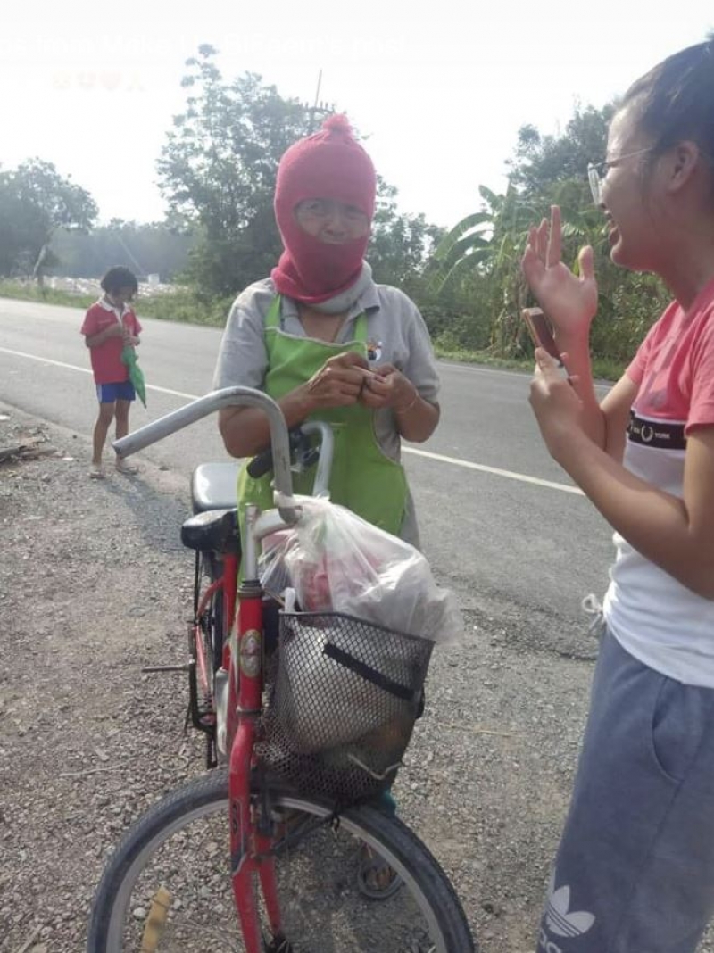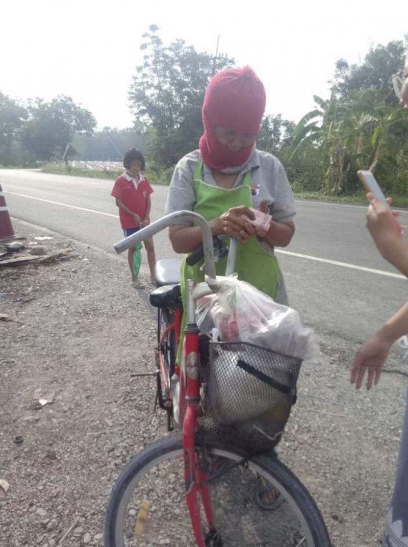 ป้า ขอบคุณมากๆเลย พร้อมยอกมือ ป้าบอกว่าเดี๋ยวมีเงินจะแวะมาให้นะหนู