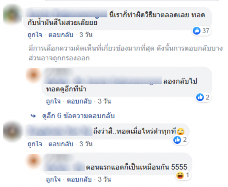 อย่างไรก็ตาม หากจะทอดด้วยน้ำมัน ก็ไม่ได้มีการระบุว่าผิดแต่อย่างใด แต่อาจจะทำให้ดูไม่ค่อยน่ารับประทานเท่ากับทอดด้วยน้ำ ซึ่งก็แล้วแต่ความชอบของแต่ละคน