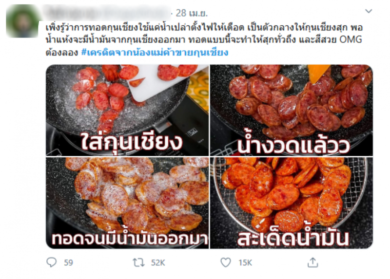 เรียกได้ว่าเป็นอีกหนึ่งเรื่องราวที่ถูกพูดถึงอย่างมากในโลกออนไลน์ เมื่อช่วงไม่กี่วันที่ผ่านมา ได้มีเผยเคล็ดลับในการทอดกุนเชียง ให้ออกมาดูน่ารับประทาน โดยวิธีดังกล่าวไม่ได้ใช้น้ำมันในการทอด แต่จะใช้น้ำเปล่าแทน ถึงแม้ว่าวิธีดังกล่าวนี้ จะมีหลายคนที่ทำอยู่ แต่ก็ยังมีอีหลายคนที่ไม่เคยรู้มาก่อน เพราะหลายท่านทอดด้วยน้ำมันและก็มักจะออกมาดูไม่ค่อยน่ารับประทาน จนกลายเป็นประเด็นที่ว่า นี่เราทอดกุนเชียงผิดมาตลอดเลยหรือนี่