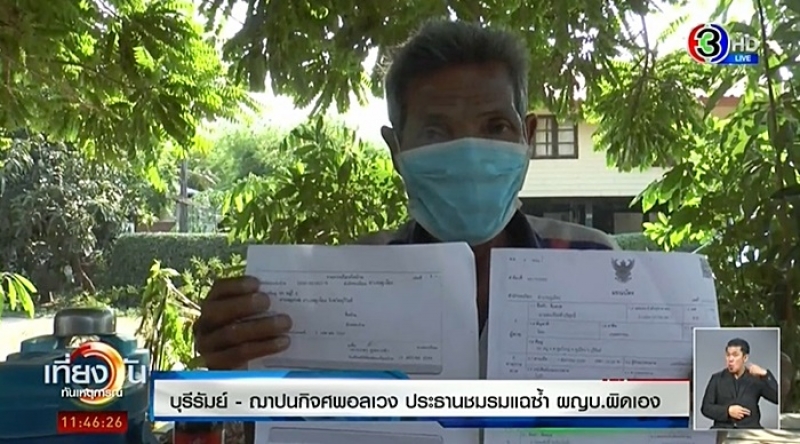 วันที่ 1 พฤษภาคม 2563ชาวบ้าน ต.ตูมใหญ่ อ.คูเมือง จ.บุรีรัมย์ ได้ร้องเรียนต่อสื่อมวลชนว่า มีผู้ใหญ่บ้านแจ้งตายลูกบ้านตัวเองแทนญาติ แล้วพยายามเบิกเงินฌาปนกิจเกือบ 8 หมื่นบาท จึงอยากให้มาตรวจสอบ เพราะร้องเรียนนานกว่า 5 เดือน แต่คดีไม่คืบ หวั่นมีผลประโยชน์ทับซ้อน