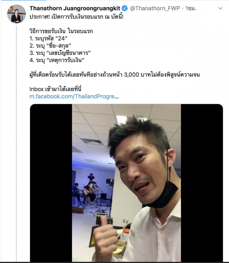 โครงการนี้ไม่ใช่ธนาธรแจกเงิน ไม่ใช่ธนาธรช่วยเหลือประชาชน แต่เราประชาชนทุกคนช่วยเหลือกัน