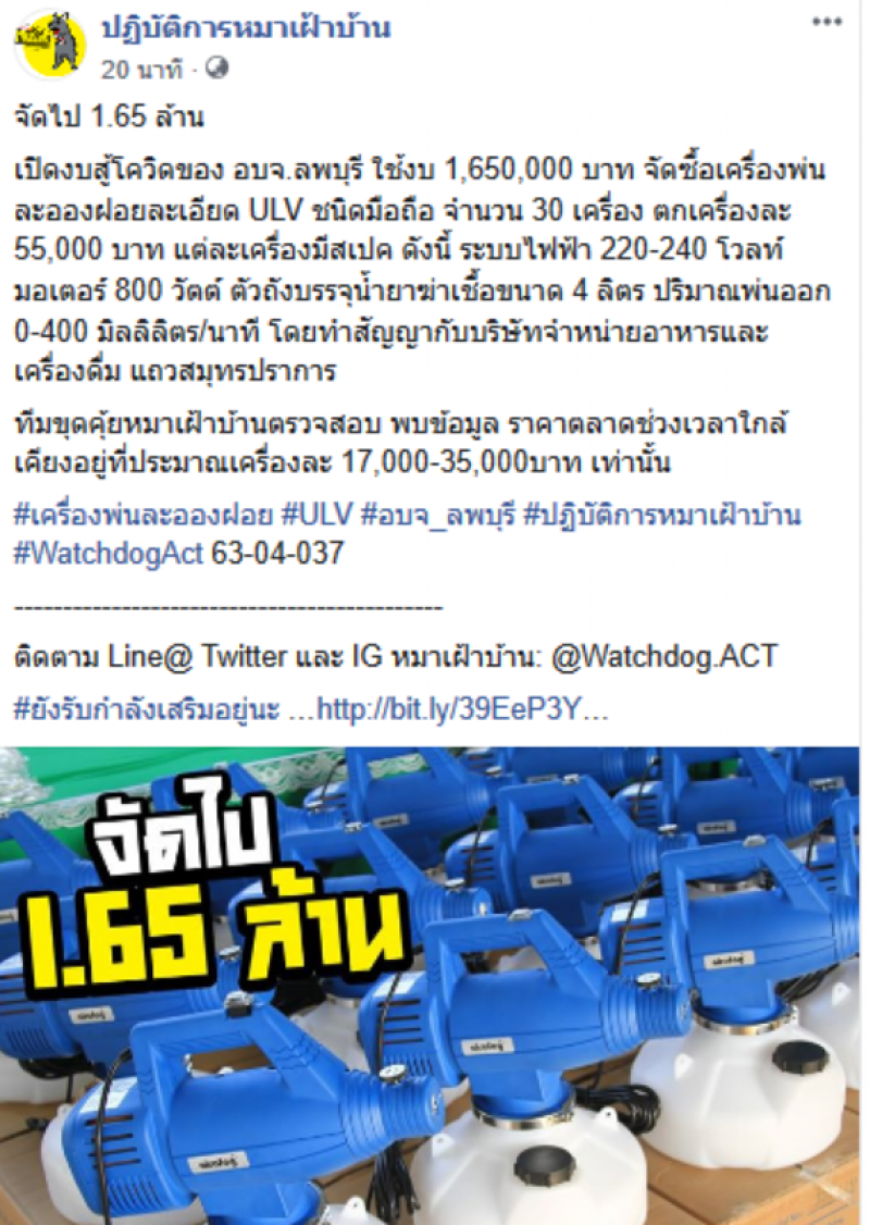 เพจดังแฉ อบจ จัดซื้อเครื่องพ่นละอองฝอย
